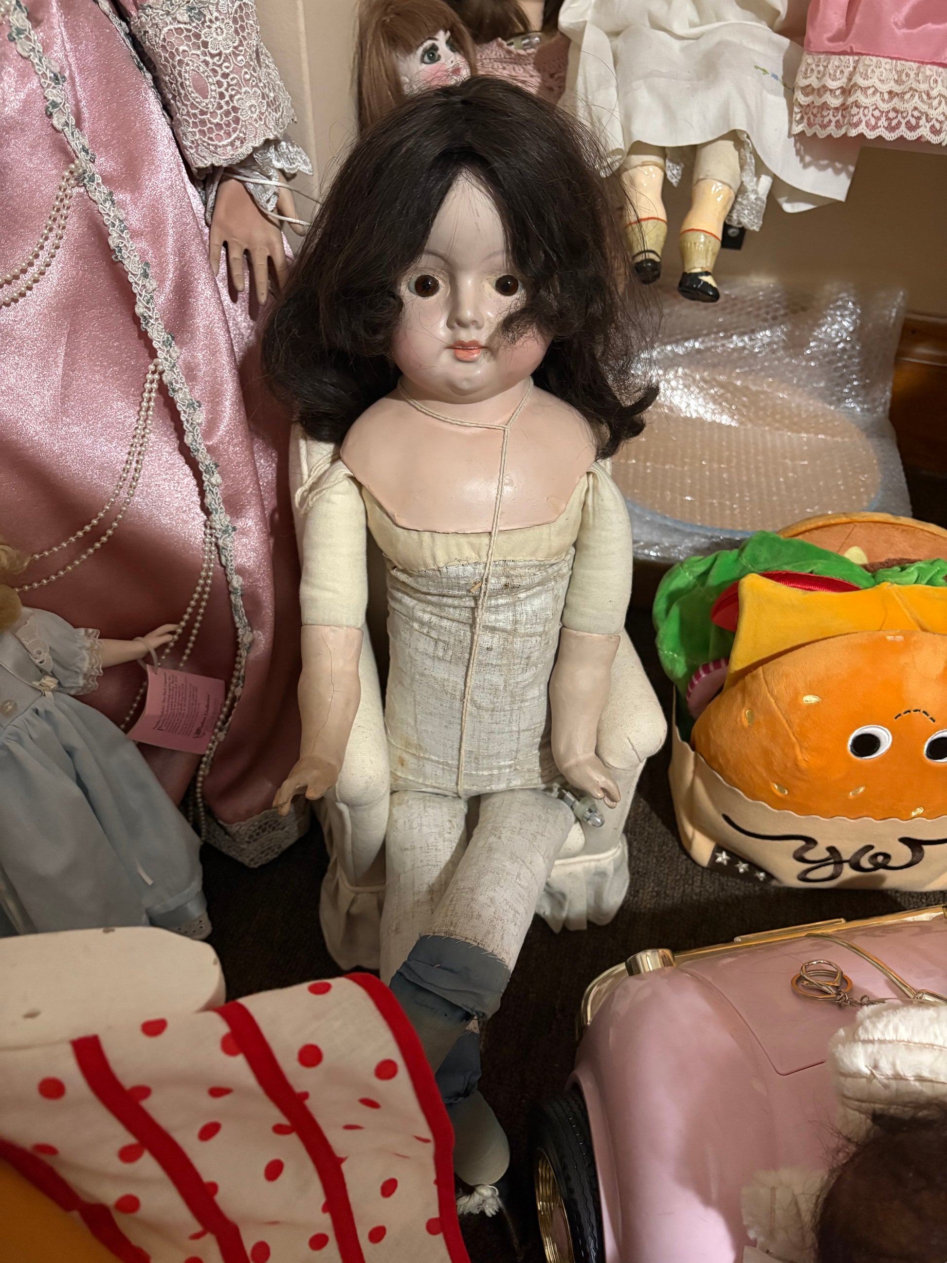She was passed along to me from a fellow collector who lived just across from a cemetery. She had been kept among many other haunted dolls, but Katrina’s presence stood apart. She isn’t shy, and doesn’t mind being recorded or when meeting new people. Even while sitting in the doll room, watching over my younger spirits there’s a eerie feeling that comes over you. Something about her feels unfinished but not dangerous, dear.