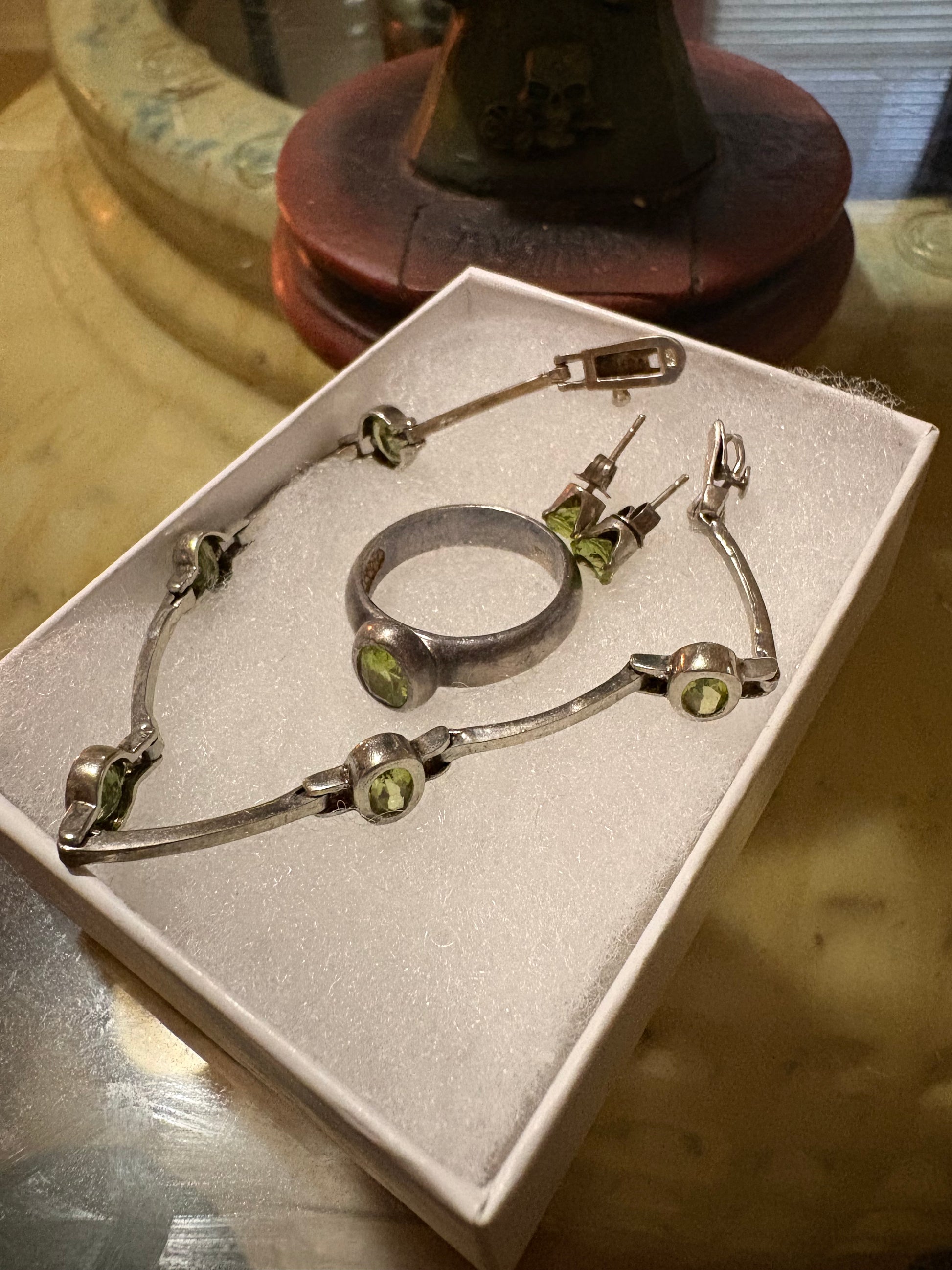Coven Spell Cast Vintage 925 Sterling Silver Magickal Peridot Stone Jewelry Set- Fully Charged Ring, Bracelet & Earrings | Prosperity & Renewal Amulet